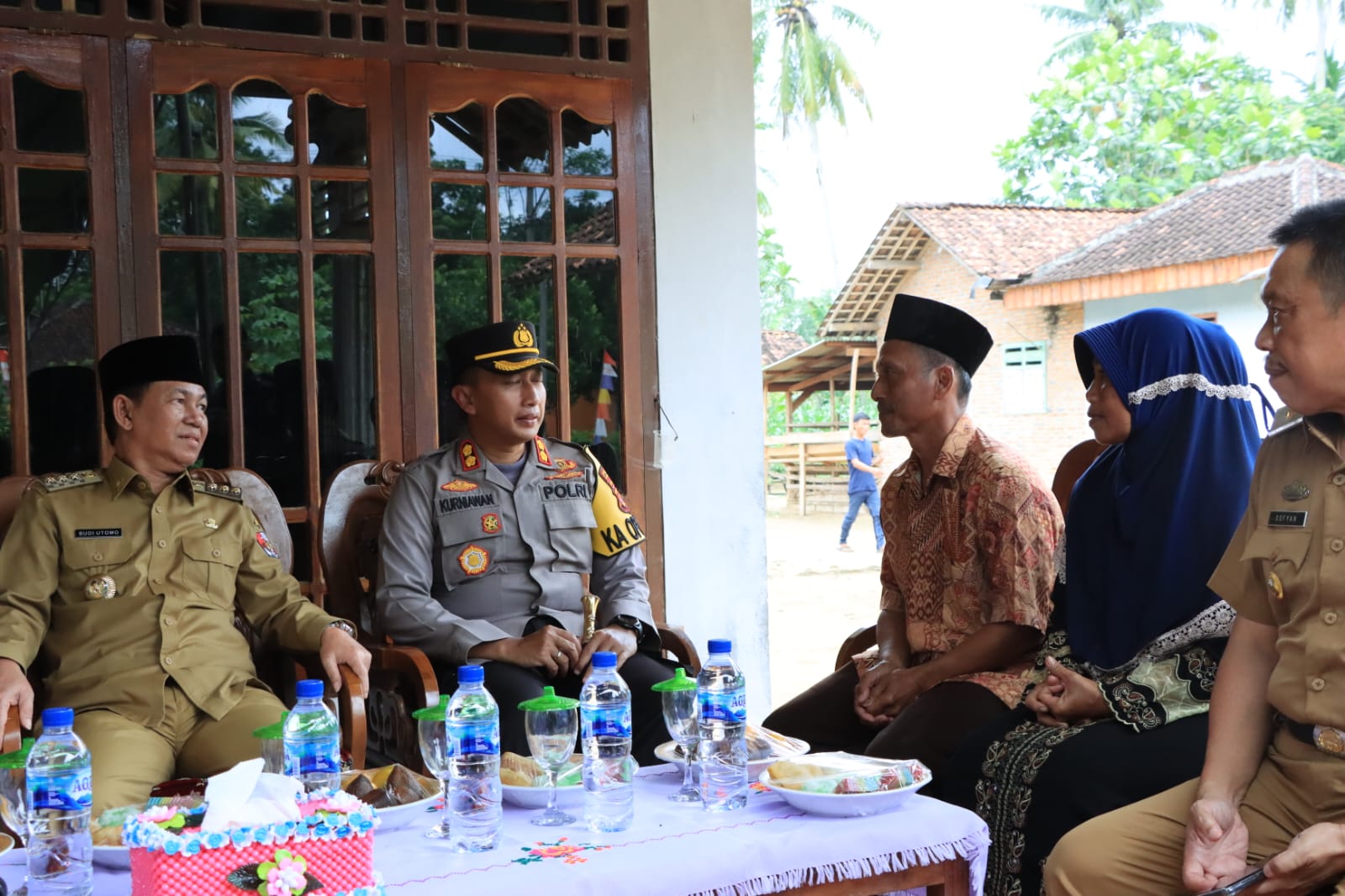 Lampung Utara,- Bupati Lampung Utara Hi. Budi Utomo SE bersama Kapolres AKBP Kurniawan Ismail SH.SIK.MIK., mengunjungi rumah kediaman keluarga Hardi, korban Curas yang merenggut nyawa anaknya Ilham Maulana.