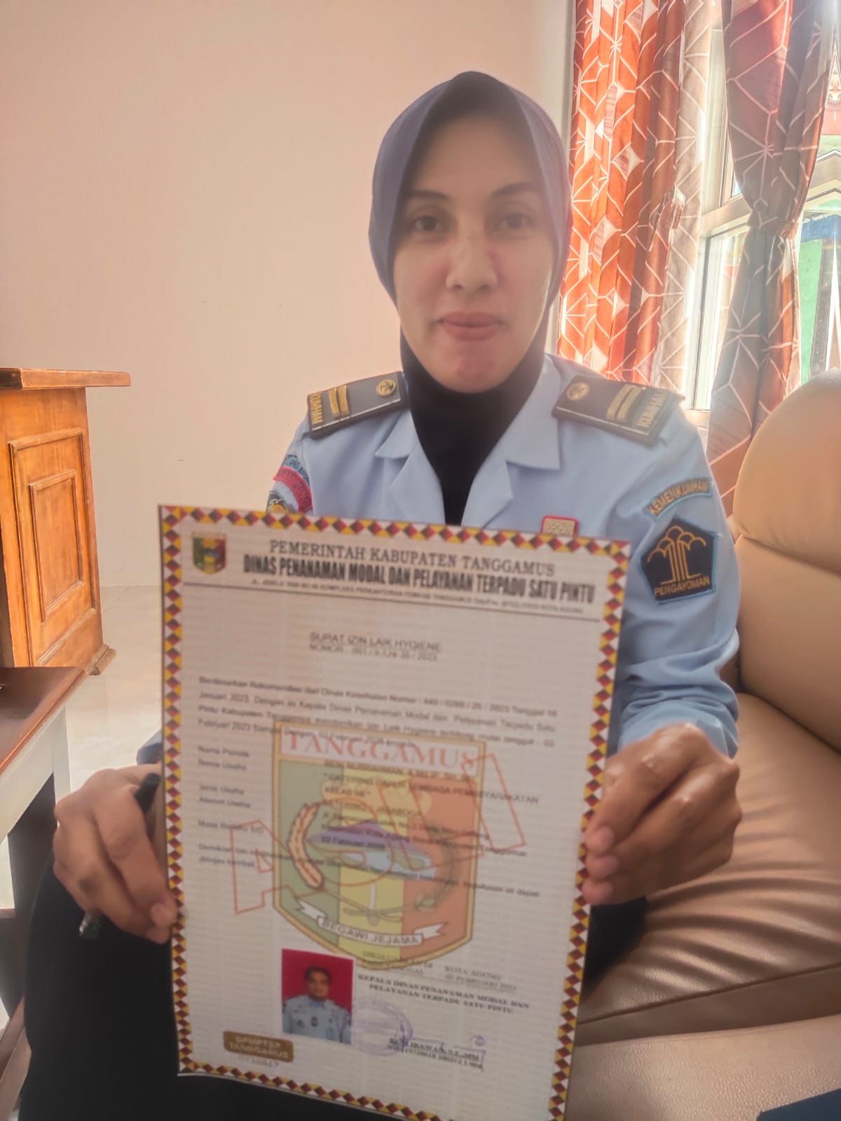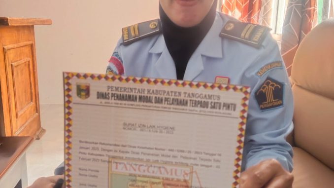Tanggamus- Lembaga Pemasyarakatan (Lapas) Kelas IIB Kotaagung kembali dapatkan sertifikat ‘izin laik hygiene’ untuk Dapur Umum oleh Dinas Penanaman Modal dan Pelayanan Terpadu Satu Pintu (PMPTSP) kabupaten Tanggamus. Pemberian sertifikat ini dilakukan di kantor dinas PMPTSP Tanggamus yang ditandatangani oleh Kadis. PMPTSP Tanggamus, Beni Irawan. Selasa (7/2/2023),