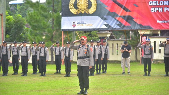 Bandar Lampung – Kapolda Lampung Irjen Pol Akhmad Wiyagus diwakili oleh Wakapolda Lampung Brigjen Pol Umar Effendi pimpin langsung Upacara Pembukaan Pendidikan Pembentukan Bintara Polri Gelombang I TA. 2023 di SPN Kemiling Bandar Lampung, pada Selasa (7/2/2023).