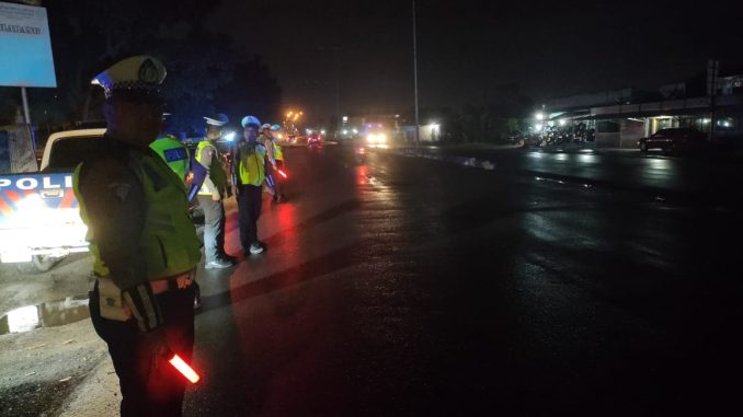 Bandar Lampung – Direktorat Lalu Lintas Polda Lampung Guna meningkatkan budaya tertib serta keselamatan dalam berlalu lintas, pada Operasi keselamatan Krakatau 2023 melakukan patroli dan pengamanan guna menghindari adanya aksi geng motor dan balap liar berlokasi di jl. Soekarno hatta PKOR way halim, Sabtu Malam (11/02/2023).
