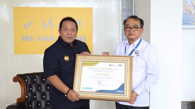 Penghargaan disampaikan PT. Taspen (Persero) Cabang Bandar Lampung saat melakukan audiensi dengan Gubernur Lampung, di Mahan Agung, Senin (13/02/2023).