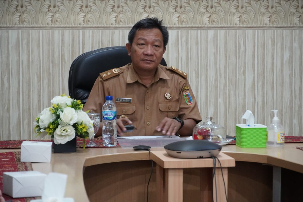 Bandar Lampung — Pemerintah Provinsi Lampung diwakili oleh Asisten Perekonomian & Pembangunan, Kusnardi, mengikuti Rapat Koordinasi Pengendalian Inflasi Daerah yang dipimpin langsung oleh Menteri Dalam Negeri Tito Karnavian, secara daring, di Ruang Command Center Dinas Kominfotik Provinsi Lampung, Senin (13/2/23).
