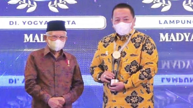 Penghargaan disampaikan atas capaian Provinsi Lampung dalam menciptakan Hubungan Kemitraan yang sehat antara Pelaku Usaha Besar bersama UMKM di Provinsi Lampung.