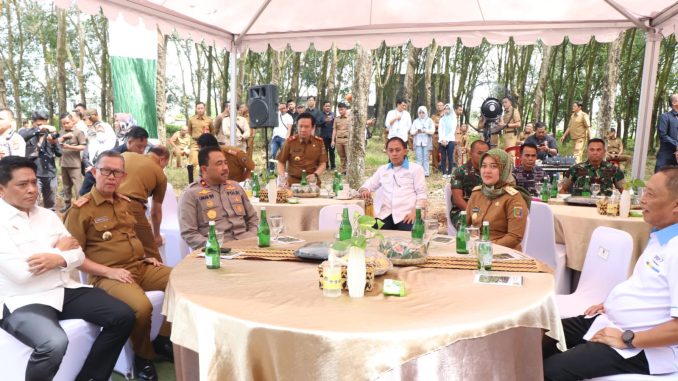 Lampung Selatan, — Wakil Gubernur Lampung, Chusnunia beserta jajaran Forkopimda Provinsi Lampung melakukan kunjungan ke Lokasi Rencana Pembangunan Kawasan Sport Center di sebelah gerbang tol Kota Baru Lampung Selatan, Senin (20/2/2023).