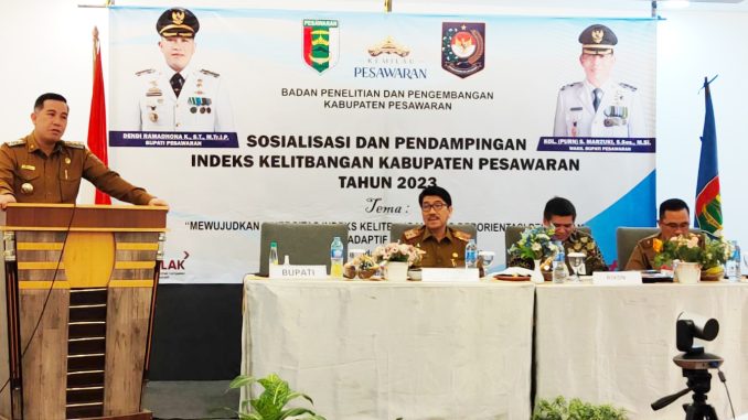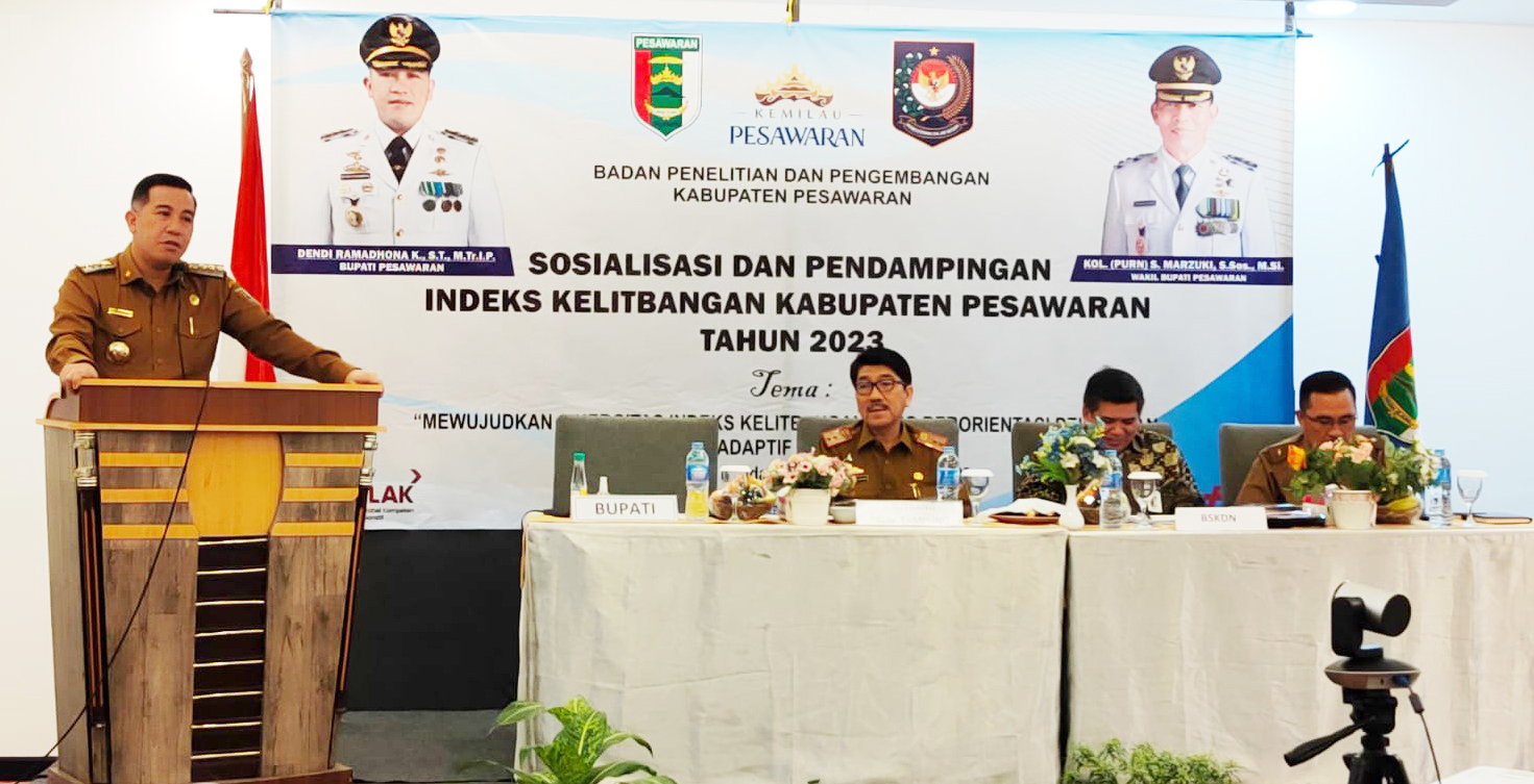 Pesawaran- Bupati Pesawaran H. Dendi Ramadhona K,ST.M.Tr.I.P. membuka acara Sosialisasi dan Pendampingan Indeks Kelitbangan Kabupaten Pesawaran di Hotel Horison – Bandar Lampung, Selasa (28/2/2023).
