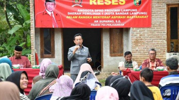Dalam rangka menjaring aspirasi masyarakat Anggota Komisi V DPRD Lampung dari Fraksi PDI Perjuangan AR. Suparno, SE menggelar reses masa sidang ke I tahun 2023, Jum’at (24/2/2025).