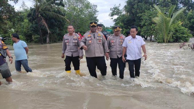 Tinjau Langsung Lokasi Banjir, Kapolres Tulang Bawang Berikan Imbauan Agar Warga Lewat Jalan Alternatif