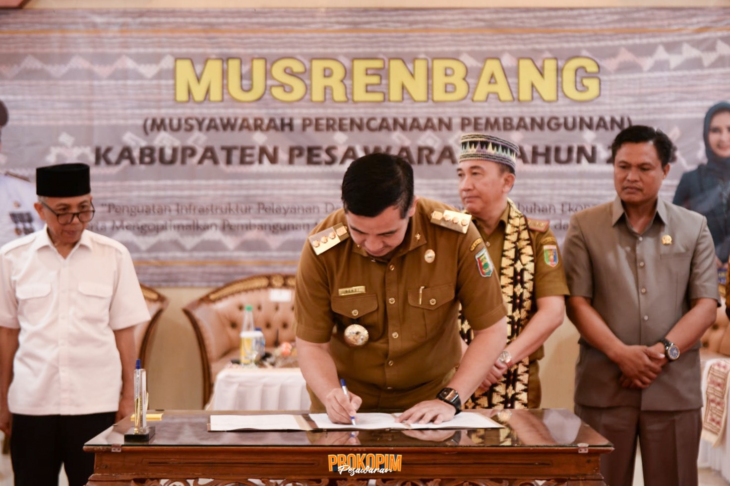 Dilaksanakan juga Penandatanganan Berita Acara hasil Musrenbang Kab. Pesawaran Tahun 2023 oleh perwakilan peserta Musrenbang yang disaksikan oleh Bupati Pesawaran.