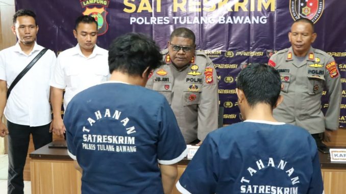 Hal tersebut disampaikan langsung oleh Kapolres dengan didampingi Kasat Reskrim, AKP Wido Dwi Arifiya Zaen, SIK, MH, Kapolsek Menggala, AKP Sunaryo, dan Kanitres Polsek Menggala, Bripka Hade Firmanto, SH, MH, saat menggelar konferensi pers, di Aula Mapolres Tulang Bawang, Senin (27/03/2023), pukul 09.30 WIB.