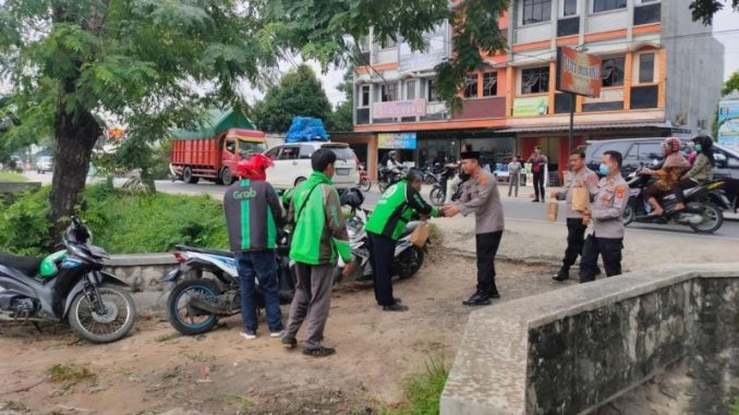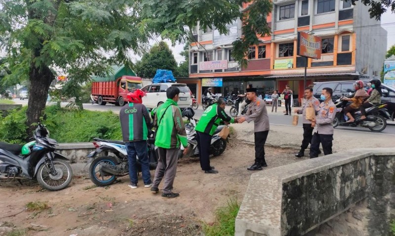 “Untuk hari ini sasaran kita khususkan kepada saudara saudara kita pekerja ojek pangkalan, ojek online, sopir angkot dan masyarakat yang membutuhkan lainya,” ujar Rio.