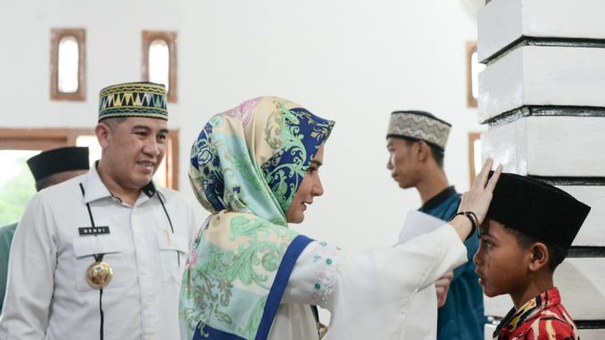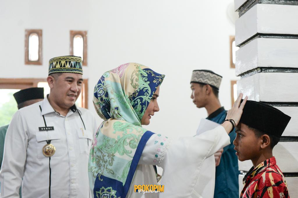 Bupati Dendi juga menyerahkan bantuan untuk pembangunan masjid serta santunan kepada anak yatim dan kaum dhu’afa.