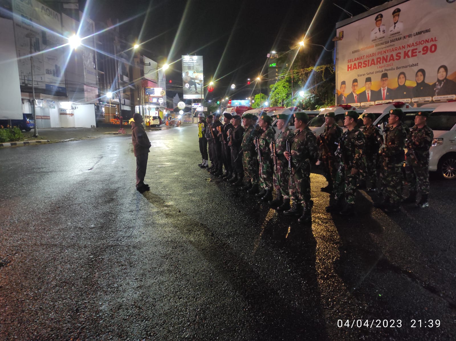 Bandar Lampung – Dalam rangka menjaga dan memngantisipasi perkembangan situasi kamtibmas di wilayah Kota Bandar Lampung, Personel TNI dari Kodim 0410/KBL, Denpom II/3 Lampung dan Tim Walet Presisi Samapta Polresta Bandar Lampung menggelar patroli gabungan, Selasa malam (5/04).