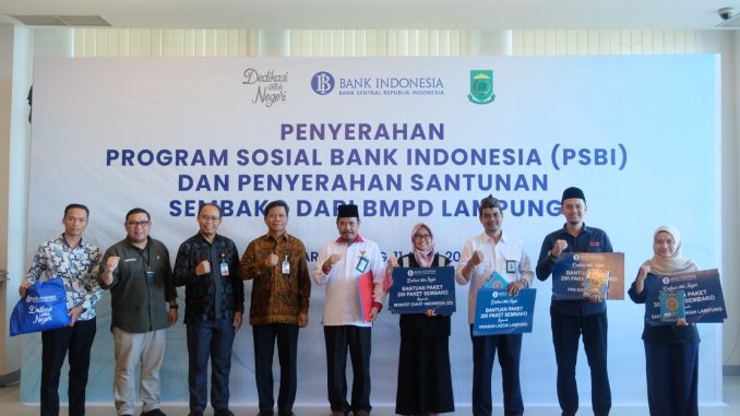 Bank Indonesia dan Badan Musyawarah Perbankan Daerah (BMPD) Lampung melaksanakan Penyerahan Program Sosial Bank Indonesia (PSBI) dan Santunan Sembako