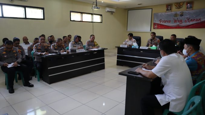 Dalam upaya persiapan pengamanan menyambut Hari Raya Idul Fitri 1444 H, Polres Way Kanan menggelar rapat koordinasi lintas sektoral dalam rangka menghadapi Operasi Ketupat Krakatau 2023, di Aula Adi Pradana Polres Way Kanan. Kamis(13/04/2023)