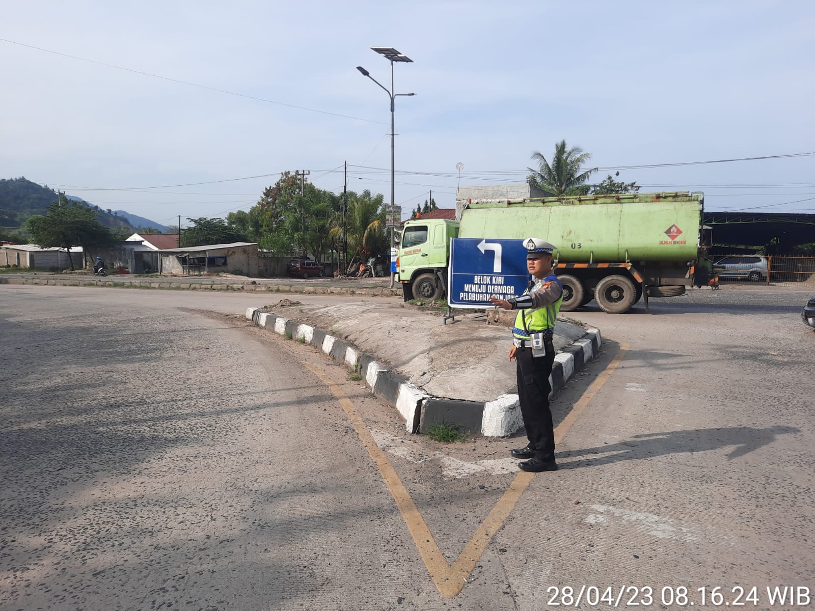 “Semantara hari ini, kita lakukan pengalihan kendaraan jenis truck atau muatan untuk melakukan perjalanan via pelabuhan panjang” ujar Kasat Lantas Polresta Bandar Lampung.