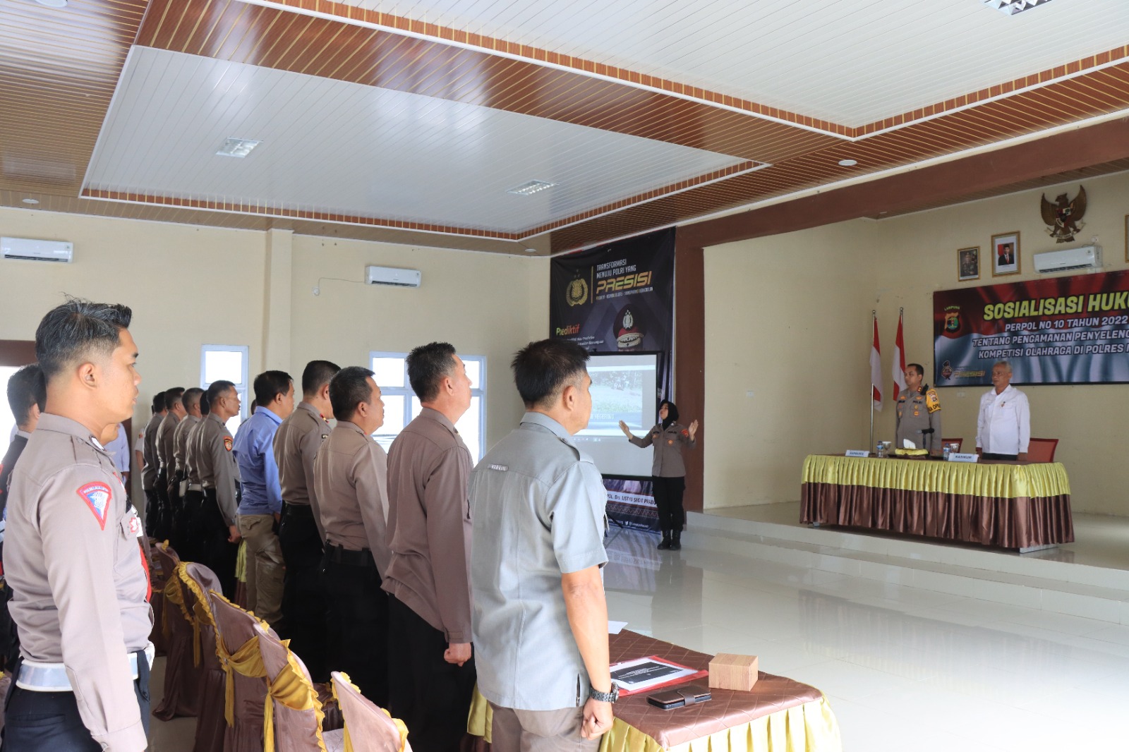 Sehingga Polres Metro melakukan sosialisasi Peraturan Kepolisian (Perpol) Nomor 10 tahun 2022 tentang pengamanan penyelenggaraan kompetisi olahraga bertempat di Aula Santika Satyawada, Rabu (24/5/2023) pagi.