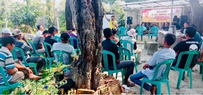Mengisi reses tahap kedua, anggota DPRD Lampung dari Fraksi Golkar berdialog dengan puluhan petani Desa Labuhan Ratu V, Kecamatan Labuhan Ratu, Lampung Timur, di Omah Kayu Jembatan Kuning, Minggu (11/6/2023).