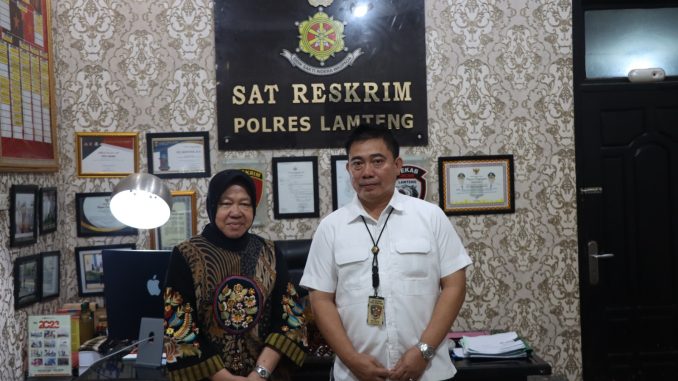 Mentri Sosial Republik Indonesia (Mensos-RI) Dr. (H.C.) Ir. Tri Rismaharini, M.T mengapresiasi kinerja Sat Reskrim Polres Lampung Tengah, Polda Lampung dalam pengungkapan kasus kejahatan seksual terhadap siswi SMP sebut saja B (17) oleh kedua ayah tirinya. Kamis (22/6/23).