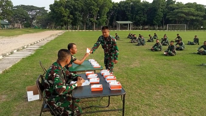 Pembagian buku saku tersebut, langsung di serahkan ke seluruh Kompi jajaran Yonif 143/TWEJ yang di bagikan kepada seluruh prajurit secara serentak dimasing-masing Kompi.