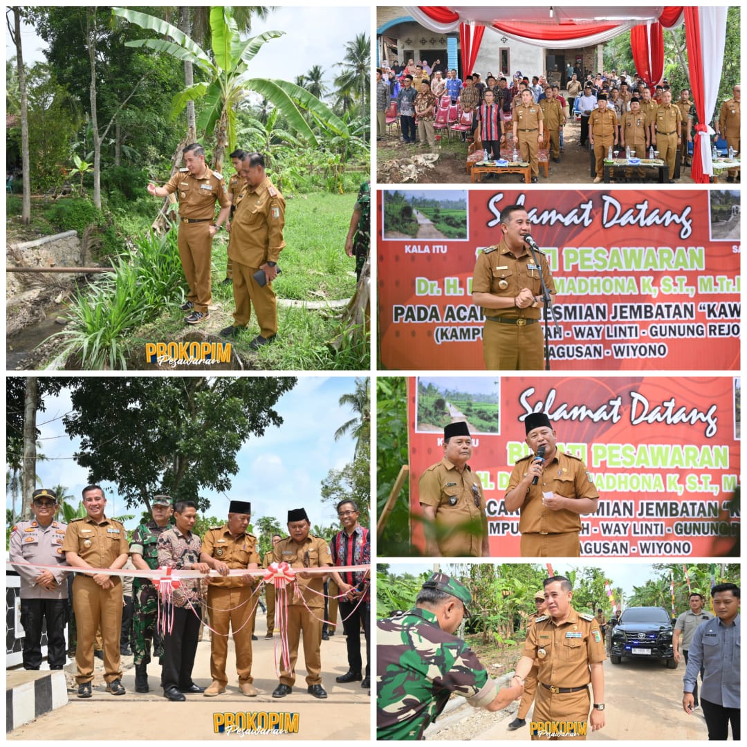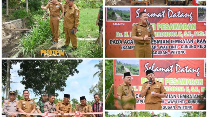 Demikian dikatakan Bupati Pesawaran saat meresmikan jembatan KAWAGU (Kampung Sawah -Waylinti – Gunung rejo) yang menghubungkan Dusun Kampung Sawah, Dusun Way Linti dan Dusun Gunung Rejo di Desa Wiyono, Kecamatan Gedong Tataan, Senin (08/01/2024).