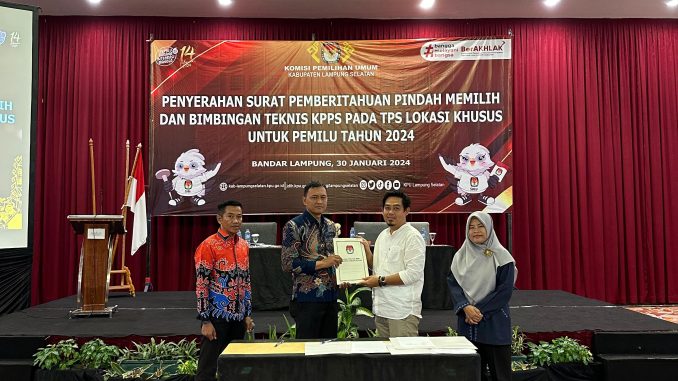 “Lapas Narkotika Bandar Lampung merupakan salah satu TPS di lokasi khusus oleh sebab itu diperlukan adanya penyerahan surat pemberitahuan pindah memilih dan bimbingan teknis KPPS ini sangat diperlukan agar tidak adanya kendala dan berjalan lancar saat penyelenggaraan pemungutan suara,” ungkapnya