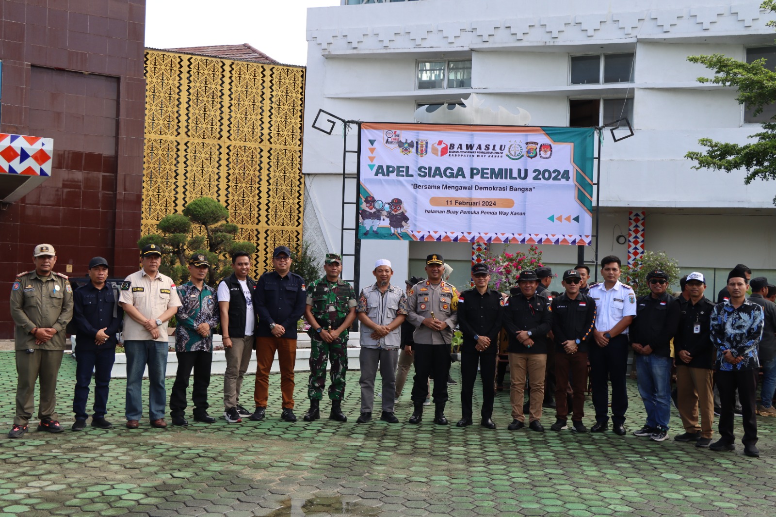 Dalam rangka memasuki masa tenang, Badan Pengawas Pemilu (Bawaslu) Kabupaten Way Kanan Provinsi Lampung melaksanakan Apel Siaga Pemilu 2024, di halaman Buay Pemuka Pemda Kabupaten Way Kanan. Minggu (11/02/2024)