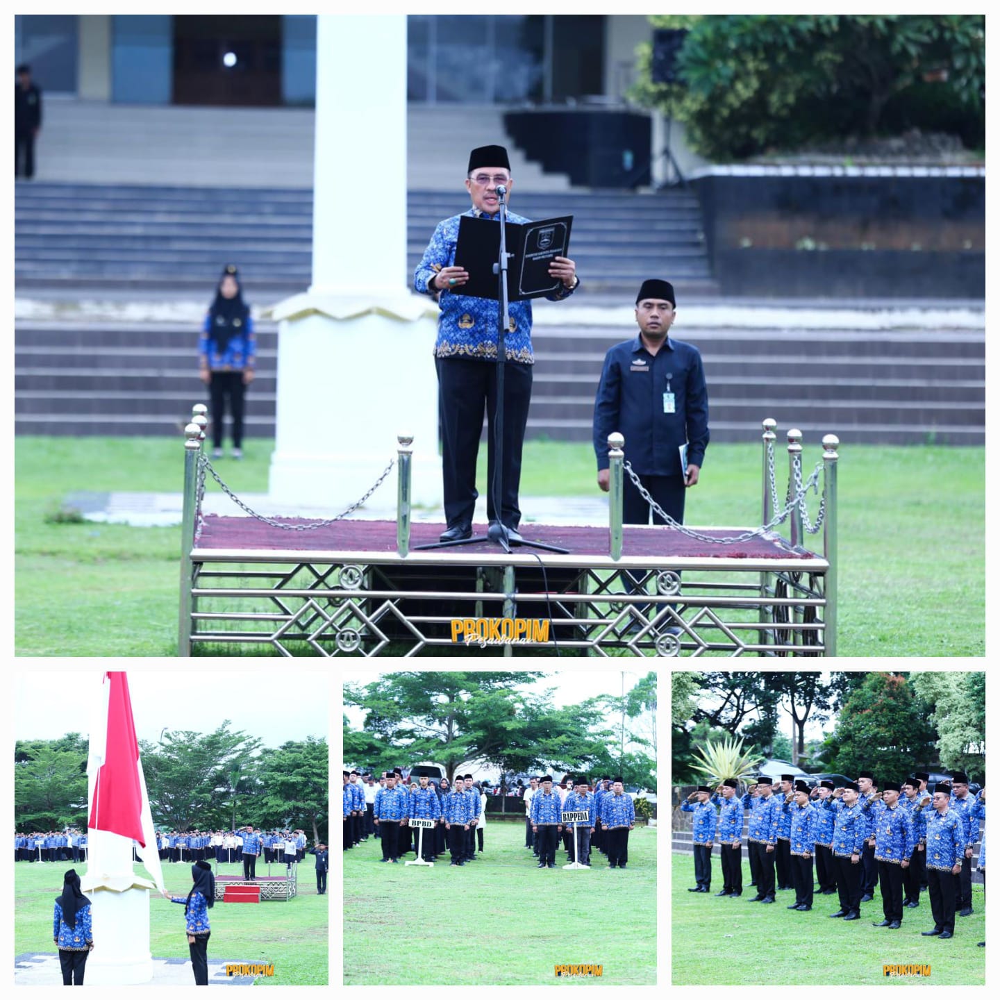Turut hadir pada upacara tersebut para Staf Ahli, Asisten dan Seluruh Kepala OPD di lingkup Pemkab Pesawaran, para Pejabat Administrator, Pengawas, ASN, P3K, petugas tenaga kontrak dan seluruh peserta upacara.