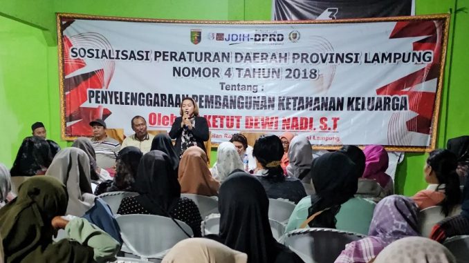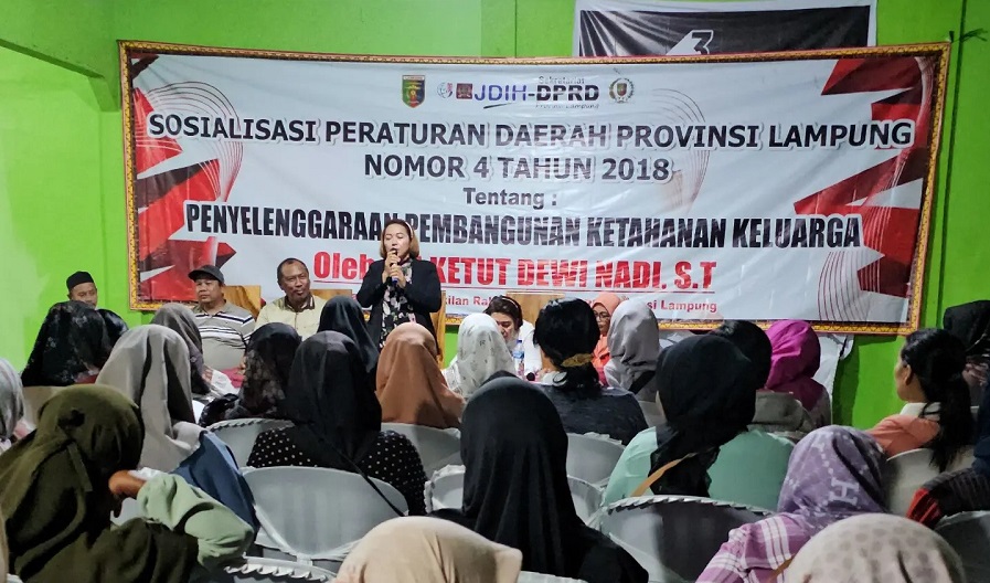 Anggota DPRD Provinsi Lampung Fraksi PDI Perjuangan Dapil 7 Lampung Tengah, Ni Ketut Dewi Nadi menggelar Sosialisasi Peraturan Daerah Provinsi Lampung Nomor 4 Tahun 2018 Tentang Penyelenggaraan Pembanggunan Ketahanan Keluarga. (10/2 2024)