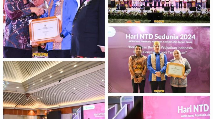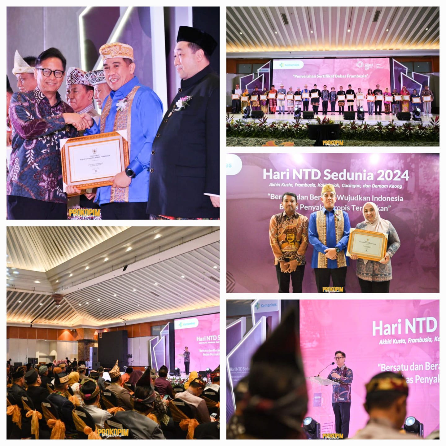 Bupati Pesawaran Dendi Ramadhona menerima sertifikat tersebut dari Menteri Kesehatan RI Budi Gunadi Sadikin pada peringatan hari Neglected Tropical Diseases (NTDs) sedunia di Puri Agung Convention Hotel Grand Sahid Jaya Jakarta Selatan, Jakarta pada Rabu, 6 Maret 2024.