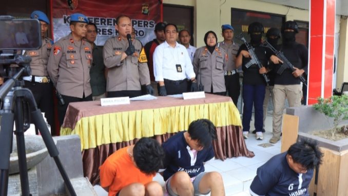 Polres Metro Polda Lampung – Polres Metro menggelar Konferensi Pers di Gedung Sat Reskrim, atas keberhasilan Tim Tekab 308 Sat Reskrim Polres Metro mengungkap dua kasus perkara tindak pidana pencurian dengan pemberatan (curat) dan menangkap tiga pelaku yang sudah sering beraksi di wilayah Kota Metro, Senin 25/03/2024.