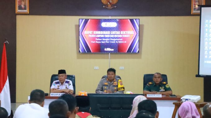 LAMPUNG TIMUR – Kapolres Lampung Timur AKBP M Rizal Muchtar, pada Rabu (27/3), menggelar Rapat Koordinasi (Rakor) Lintas Sektoral, dalam rangka Pengamanan Hari Raya Idul Fitri 1445 H.
