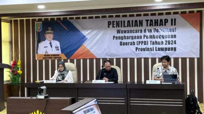 Acara yang dihelat di Gedung BAPPEDA Lampung tersebut bertujuan untuk mengevaluasi proyek-proyek pembangunan yang telah diajukan untuk mendapatkan penghargaan.
