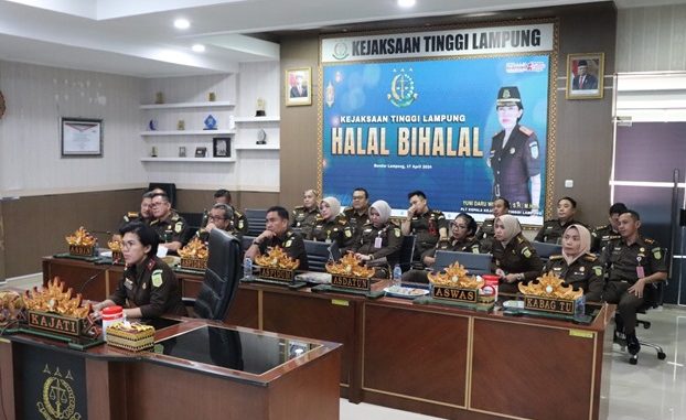 Pada Hari Rabu, 17 April 2024 Pukul 08.00 WIB Pelaksana Tugas atau (Plt) Kepala Kejaksaan Tinggi Lampung Ibu YUNI DARU WINARSIH, S.H., M.Hum., yang juga merangkap sebagai Wakajati Lampung, didampingi Para Asisten, Kabag.TU, Para Koordinator dan seluruh pejabat eselon dilingkungan Kejati Lampung melaksanakan Halal Bihalal dengan seluruh pegawai dilanjutkan dengan kegiatan halal bihalal secara daring kepada Satuan Kerja di Wilayah Hukum Kejaksaan Tinggi Lampung.
