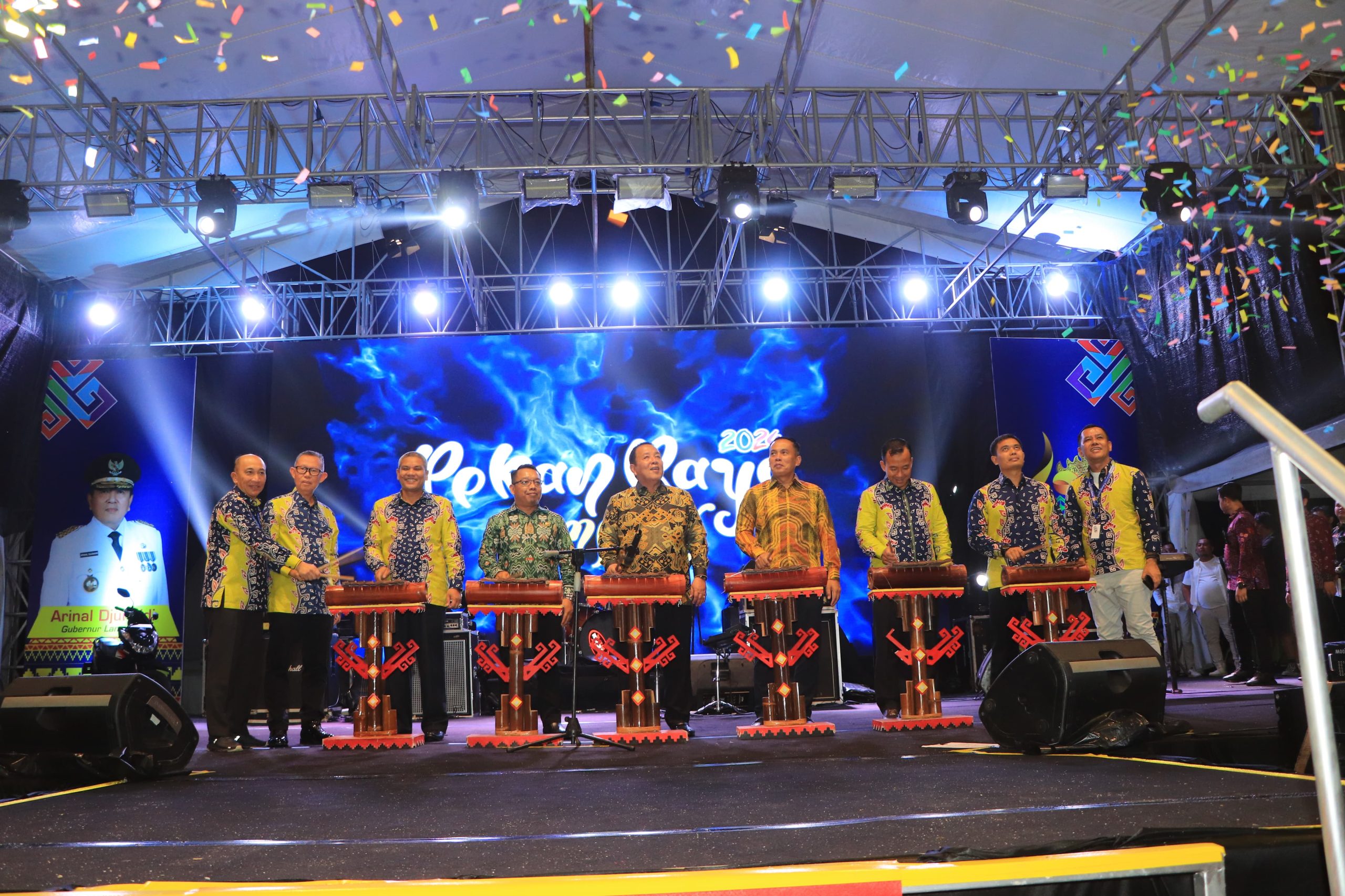 Bandar Lampung — Gubernur Lampung Arinal Djunaidi melakukan pemukulan cetik sebagai tanda dibukanya Pekan Raya Lampung (PRL) Tahun 2024 secara resmi di Pusat Kegiatan Olah Raga (PKOR) Way Halim, Rabu (22/05/2024) malam.