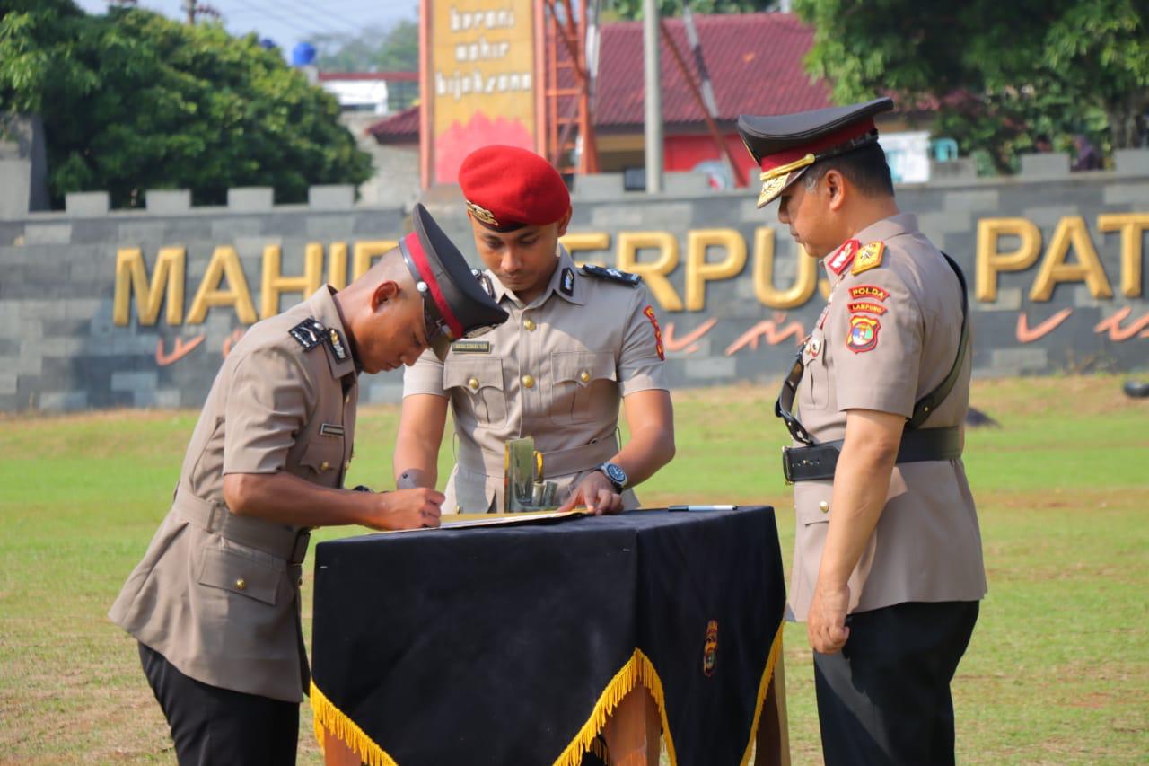 “Saya ucapkan selamat kepada saudara yang telah berhasil dilantik menjadi anggota Polri dengan menyandang pangkat Brigadir Polisi Dua (Bripda), bahwa saat ini sudah melekat kewajiban dan tanggung jawab kepada saudara sekalian menjadi seorang Polisi,” ungkapnya