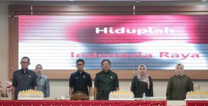 Sekretaris Daerah Provinsi Lampung Fahrizal Darminto, mewakili Pj. Gubernur Lampung Samsudin, menyerahkan dokumen Rancangan Perubahan Kebijakan Umum APBD (KUA) dan Prioritas Plafon Anggaran Sementara (PPAS) Tahun 2024 serta Rancangan KUA dan PPAS Tahun 2025 kepada Ketua DPRD Provinsi Lampung Mingrum Gumay dalam Rapat Paripurna DPRD Provinsi Lampung di Ruang Sidang DPRD Provinsi Lampung, Senin (12/8/2024).