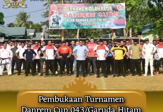 Ketua DPRD Provinsi Lampung Bapak Ahmad Giri Akbar, SE., M.BA menghadiri Acara Pembukaan Turnamen Danrem Cup 043/Garuda Hitam dalam rangka memperingati HUT TNI Ke-79 Tahun 2024.