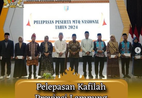 Ketua DPRD Provinsi Lampung Bapak Ahmad Giri Akbar, SE., M.BA menghadiri Acara Pelepasan Kafilah Lampung Dalam rangka persiapan pelaksanaan pemberangkatan Kafilah Provinsi Lampung pada MTQ Nasional XXX tahun 2024 di Kalimantan Timur.