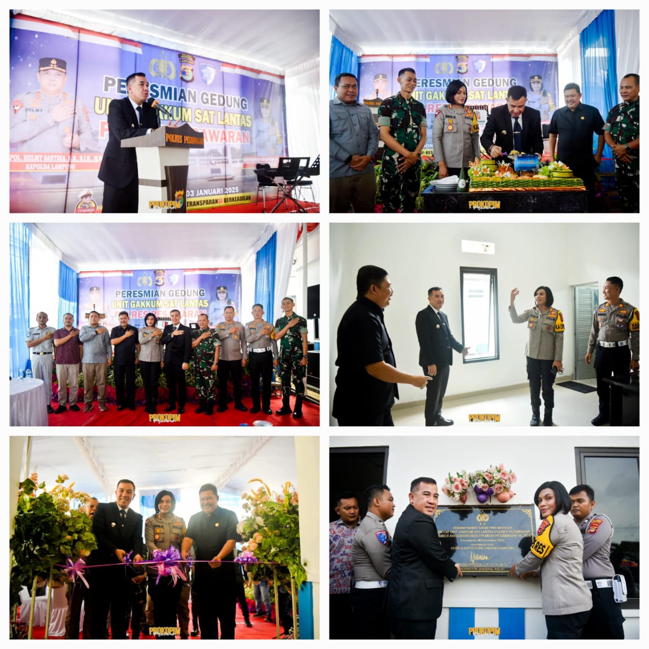 Pesawaran, 3 Januari 2025 – Bupati Pesawaran Dendi Ramadhona meresmikan Kantor Unit Penegakan Hukum (Gakkum) Satuan Lalu Lintas (Satlantas) Polres Pesawaran yang berlokasi di Jalan Ahmad Yani, Desa Sukaraja, Kecamatan Gedong Tataan pada Jum’at, (3/1/2025).