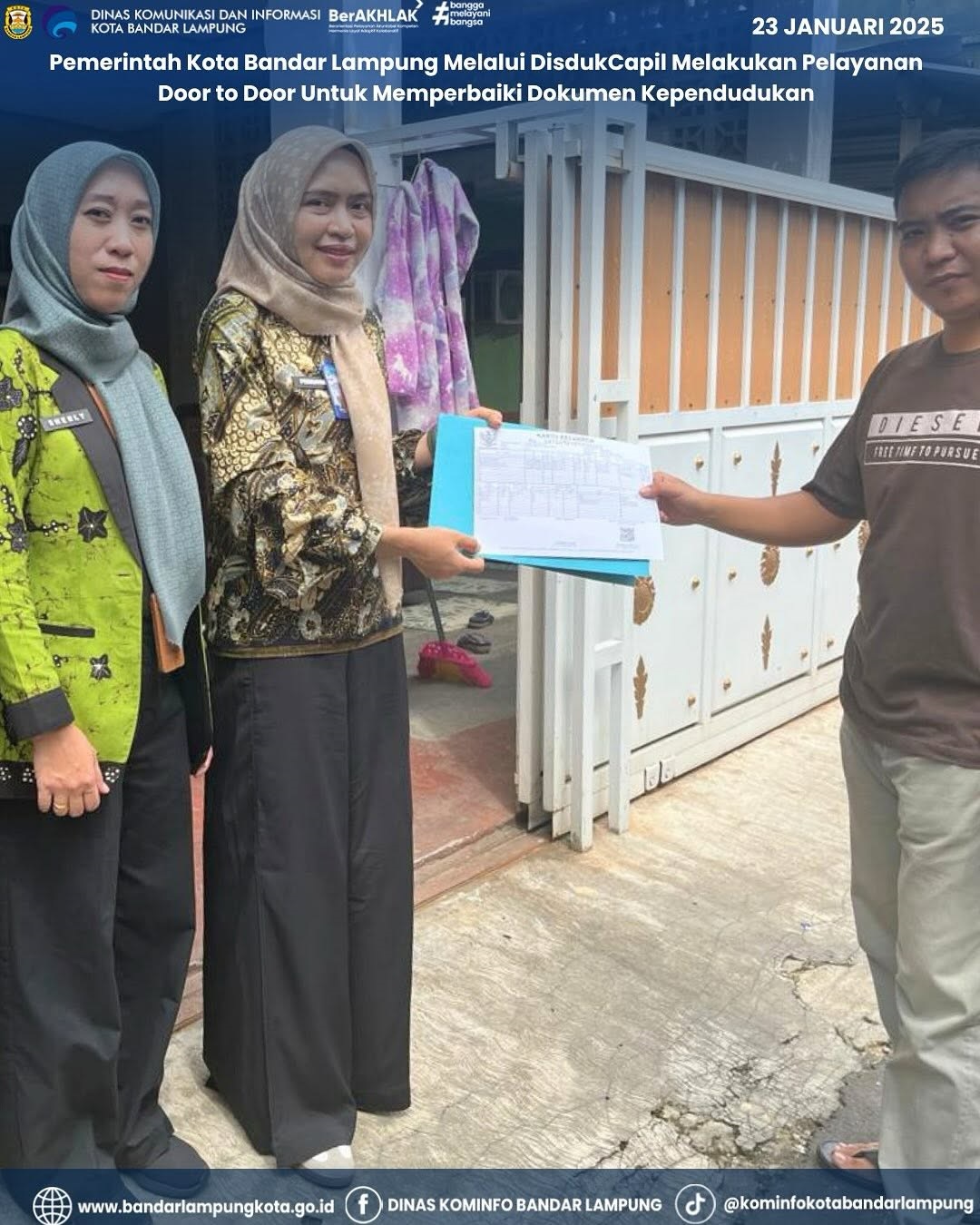 Pemerintah Kota Bandar Lampung Melalui DisdukCapil Melakukan pelayanan Door to Door untuk memperbaiki dokumen kependudukan.