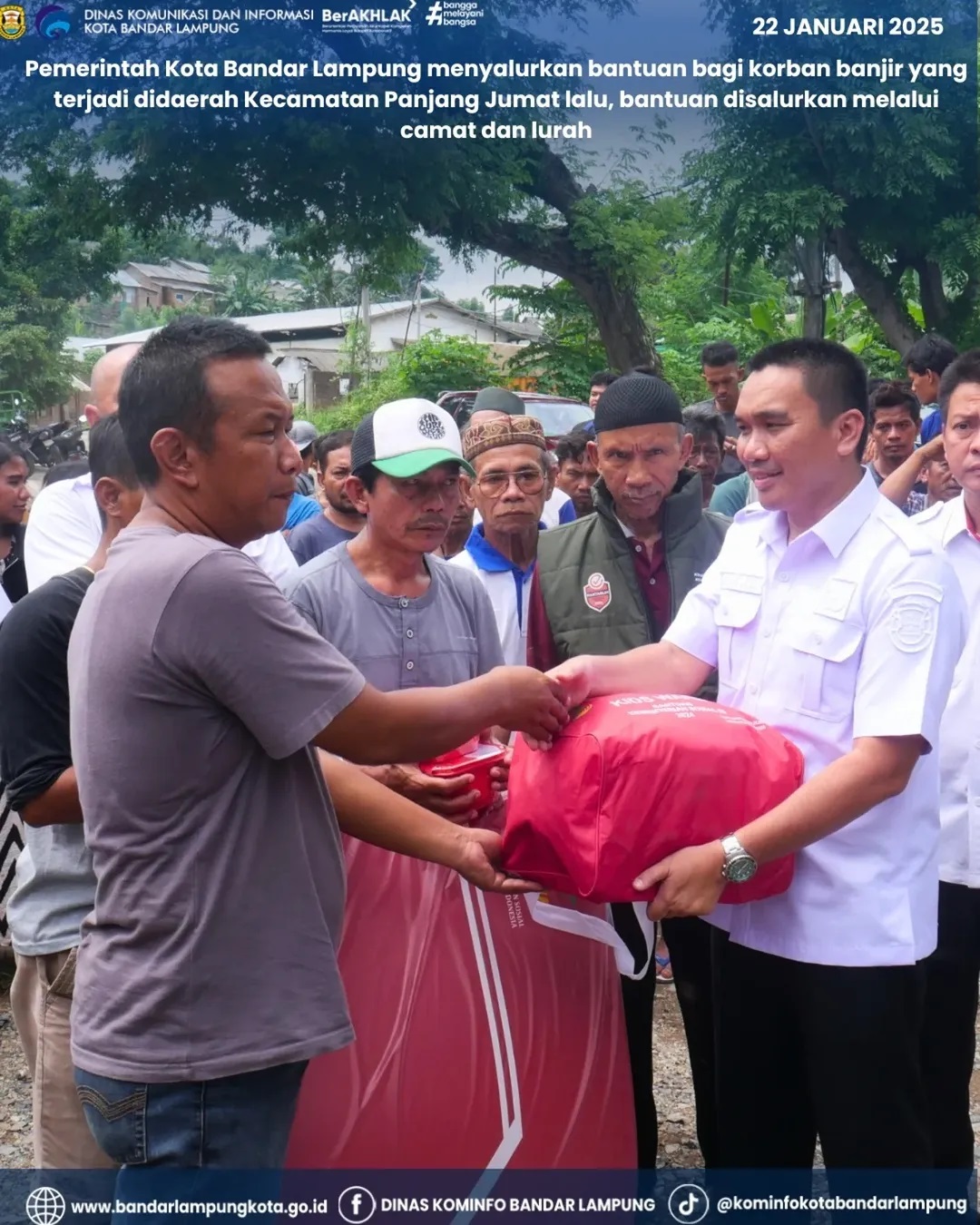 Pemerintah Kota Bandar Lampung menyalurkan bantuan bagi korban banjir yang terjadi di daerah Kecamatan Panjang Jumat lalu, bantuan disalurkan melalui camat dan lurah. Rabu, 22 januari 2025.