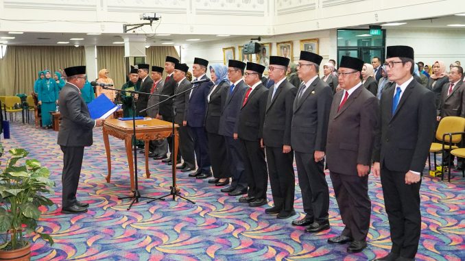 Bandar Lampung — Pj. Gubernur Samsudin melantik dan mengambil Sumpah/Janji Jabatan 12 Pejabat Pimpinan Tinggi Pratama di lingkungan Pemerintah Provinsi Lampung, di Balai Keratun Lt. III, Jumat (7/2/2025).