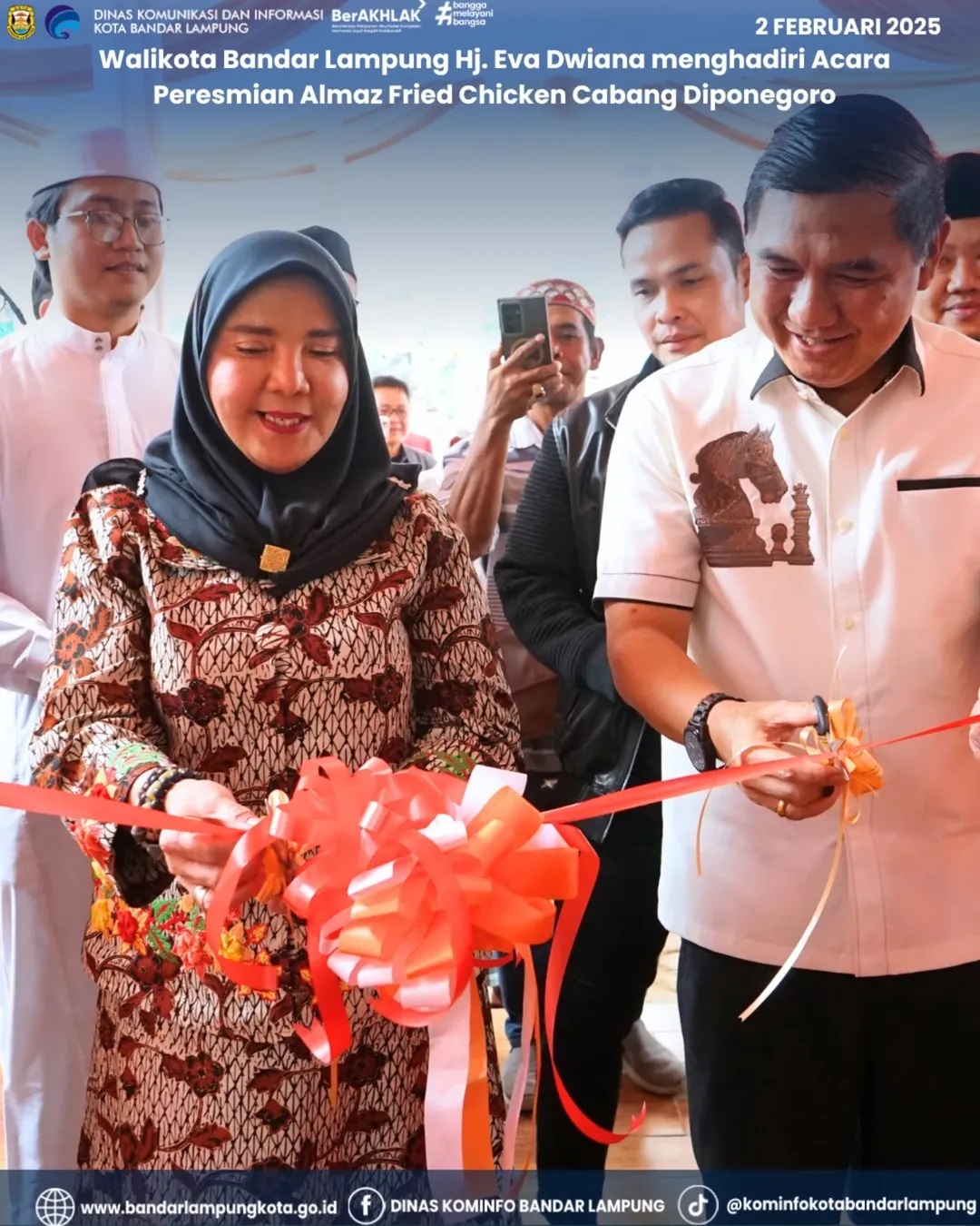 Walikota Bandar Lampung Hj. Eva Dwiana menghadiri Acara Peresmian Almaz Fried Chicken Cabang Diponegoro. Minggu, 02/02/2025. Di Jl.Diponegoro No.120, Kec. TBU.