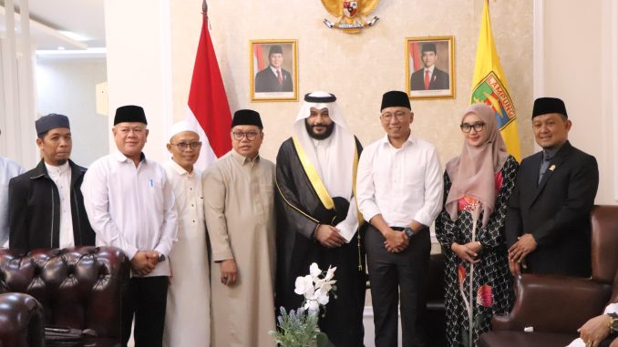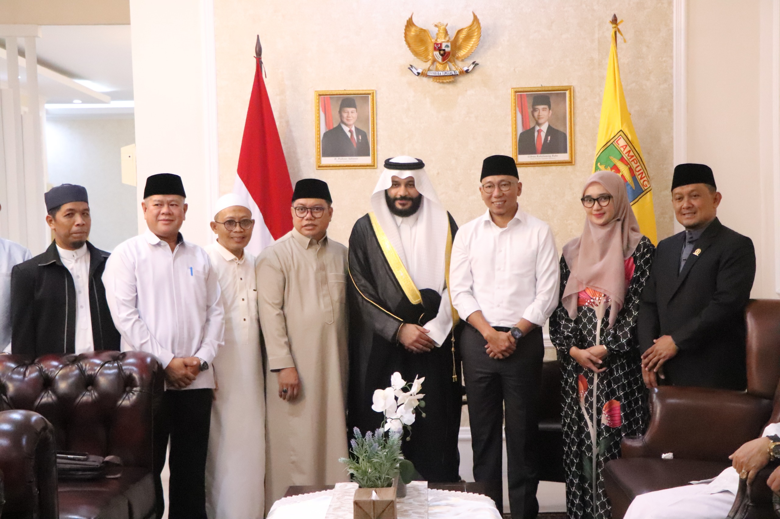 Bandar Lampung — Gubernur Lampung, Rahmat Mirzani Djausal, didampingi Wakil Gubernur Lampung, Jihan Nurlela, menerima audiensi Imam Besar dari Arab Saudi, Syaikh Abdurrahman Al-Ausy, di Guest House Mahan Agung, Selasa (4/3/2025).