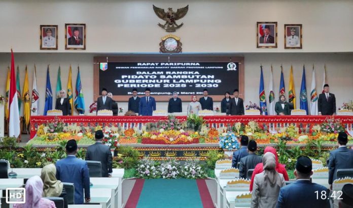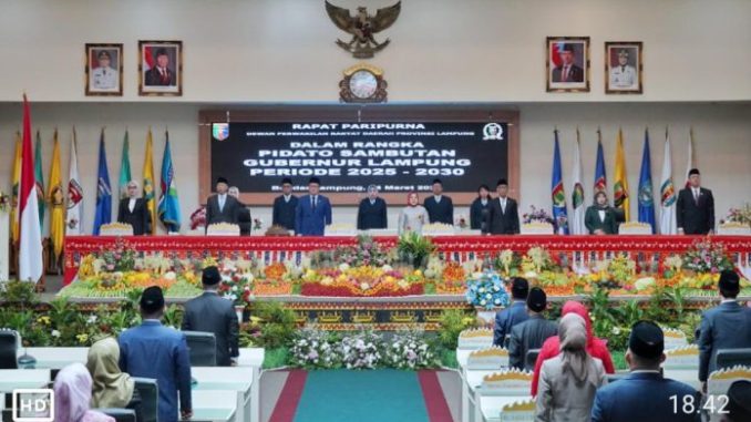 Dalam rapat paripurna tersebut, Gubernur dan Wakil Gubernur Lampung periode 2025-2030 juga menyatakan tekadnya untuk konsisten menjalankan amanah dalam memimpin Provinsi Lampung.