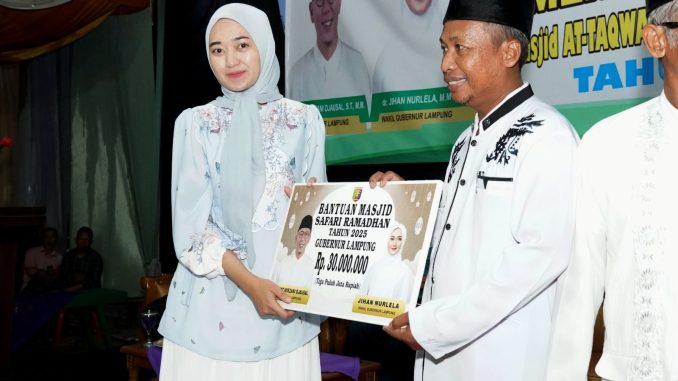 Lampung Timur,— Wakil Gubernur Lampung, Jihan Nurlela, melaksanakan kegiatan Safari Ramadan di Masjid At – Taqwa dusun 15 desa Wana Kecamatan Melinting Kabupaten Lampung Timur, Selasa (11/03/2025).