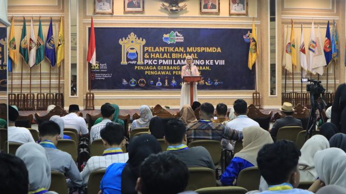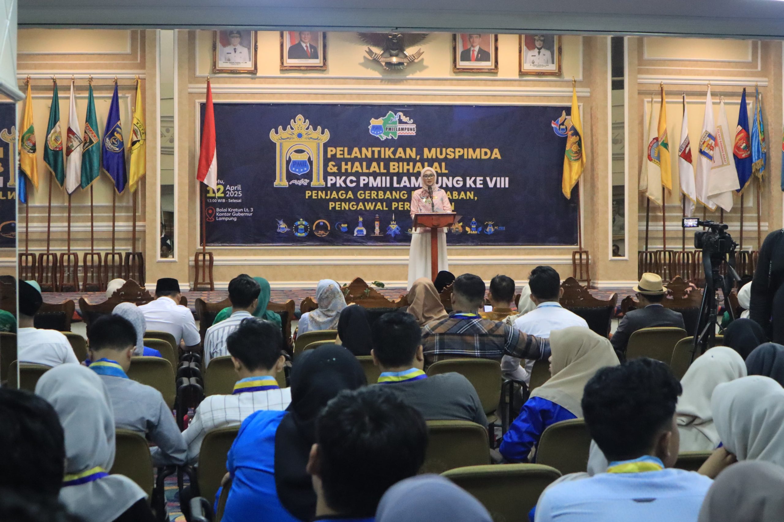 BANDARLAMPUNG – Wakil Gubernur Lampung, Jihan Nurlela, memberikan apresiasi dan dukungan penuh kepada Pengurus Koordinator Cabang Pergerakan Mahasiswa Islam Indonesia (PKC PMII) Provinsi Lampung yang baru saja dilantik. Wagub juga menyampaikan harapan besar terhadap peran strategis PMII dalam pembangunan daerah dan pembinaan generasi muda.