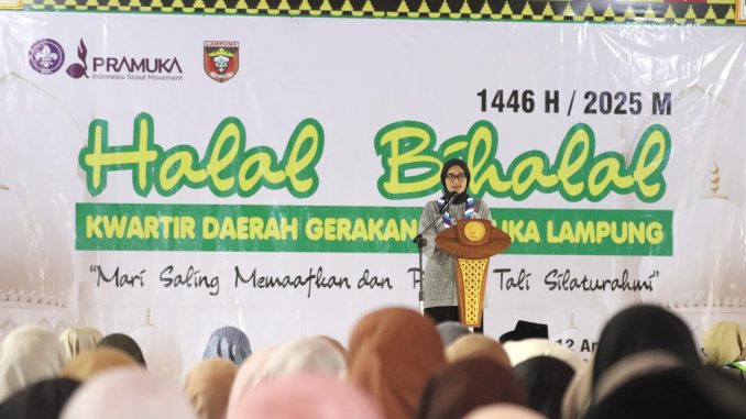 Lampung Timur – Wakil Gubernur Lampung, Jihan Nurlela, menghadiri acara Halal Bihalal yang diselenggarakan oleh Kwartir Daerah (Kwarda) Gerakan Pramuka Lampung di Rumah Dinas Bupati Lampung Timur, Selasa (15/4/2025).