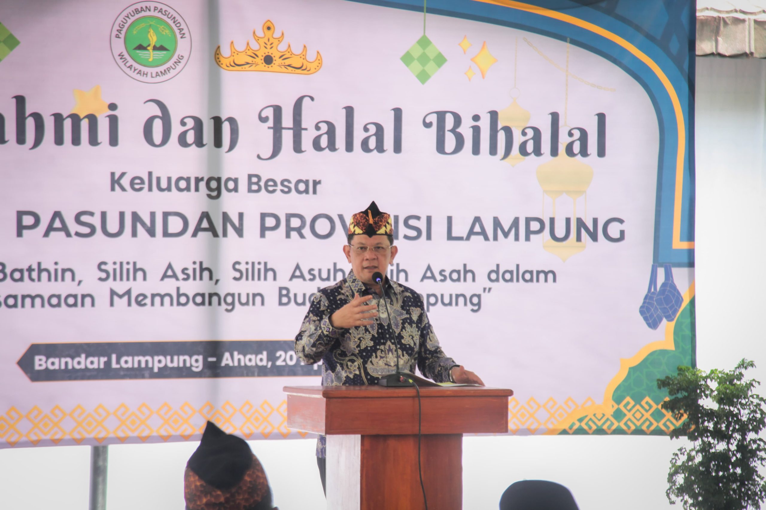 Hal tersebut disampaikan Penjabat Sekretaris Daerah Provinsi (Pj. Sekdaprov) Lampung, M. Firsada, saat membacakan sambutan tertulis Gubernur dalam acara Halal Bihalal Keluarga Besar Paguyuban Pasundan, Minggu (20/4/2025), di Pondok Pesantren Darul Hikmah, Bandar Lampung.