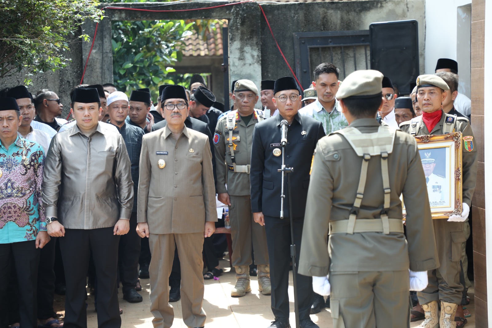 Sejak pagi, kerabat, tokoh masyarakat, hingga warga sekitar berdatangan untuk berbelasungkawa. Tampak juga sejumlah pejabat di Provinsi Lampung hadir untuk memberikan penghormatan terakhirnya. (Dinas Kominfotik Provinsi Lampung).